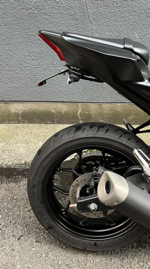 YZF-R25/R3&MT-25/03 フェンダーレスキット カムイN85 21モデル以降のナンバー角度の新基準に対応 したフェンダーレスキットです。 LEDナンバー灯を採用し、配線加工不要のカプラーオン、 車体加工不要のボルトオンとなっています。 スリムリフレクターキットが標準装備です。 ステーボルトを荷掛けフックとして使用出来ます。 ![]() ![]() ![]()
