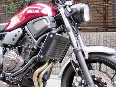 XSR700 ラジエターコアガード 1.5mm厚アルミプレートを使用し、艶消しブラック 塗装を施したラジエターコアガードです。 ラジエターフィンを保護すると同時に艶消しブラック塗装による 全体的なバイクイメージが変わり、カスタム度がアップします。 サイドカバーを外さずに共締めします。 ![]() ![]()